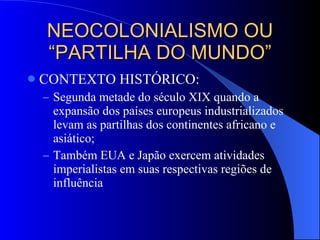 1) No século 19, as potências européias expandiram seus impérios coloniais na África e Ásia, dividindo os continentes.