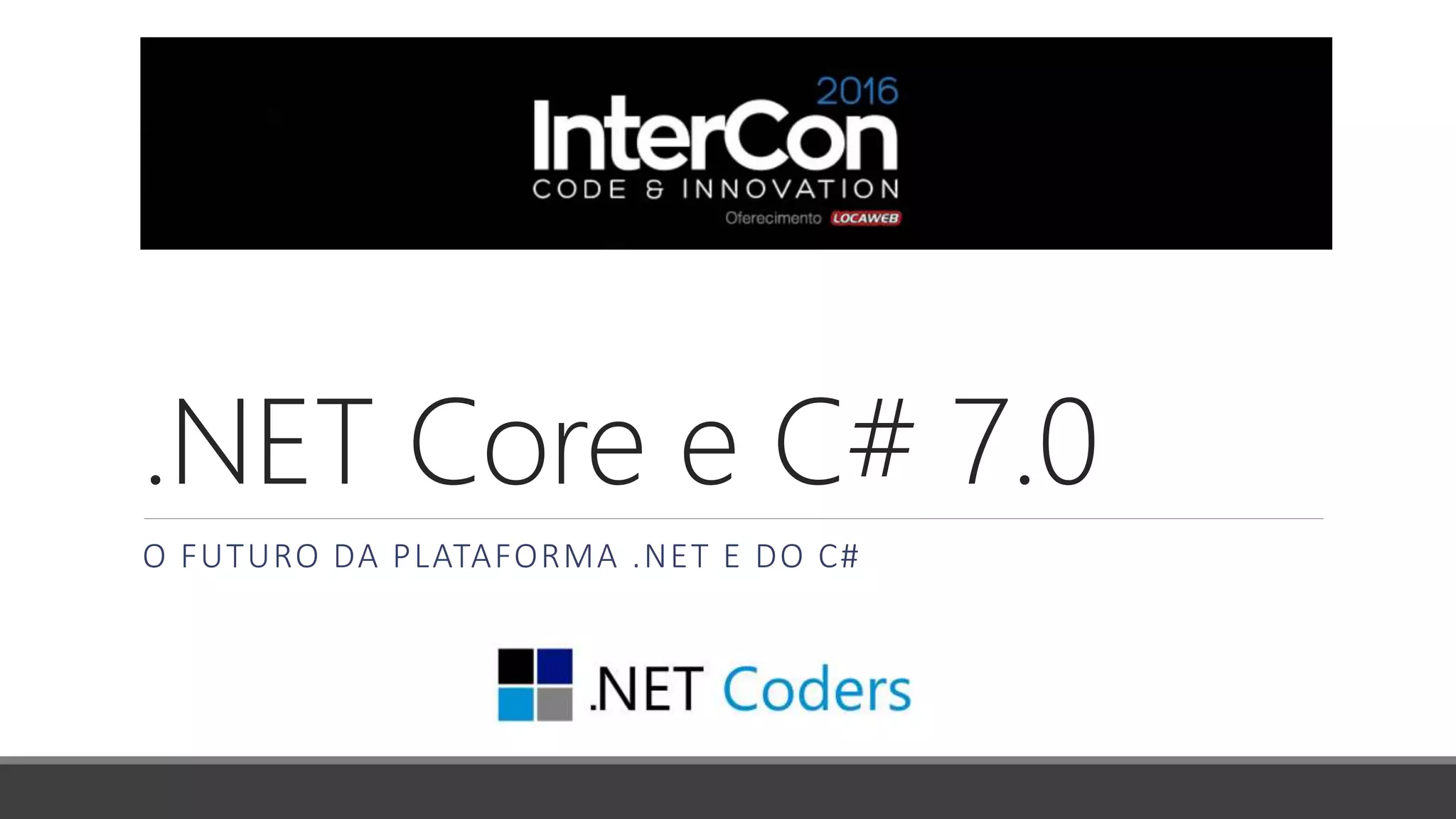 O documento discute a evolução da plataforma .NET e da linguagem C#, incluindo o lançamento do .NET Core 1.0 e as novidades previstas para o C# 7.0, como tuplas, pattern matching e local functions. O autor é Renato Groffe, um Microsoft MVP experiente que fornece uma visão geral dessas tecnologias e demonstra alguns recursos do C# 7.0.