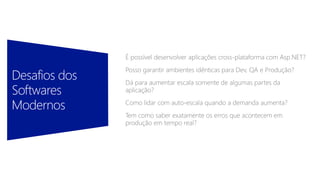 O documento aborda a introdução a microservices, incluindo suas características principais, arquitetura, padrões de API e a integração com docker e orquestradores. Também discute o conceito de serverless e esclarece mitos sobre aplicações sem servidor. Além disso, menciona cenários de uso e não recomendáveis para microservices.
