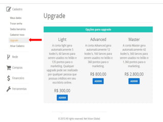 A Netvision Global Ltda é uma empresa brasileira que oferece produtos e serviços em um modelo de e-commerce, incluindo um blog profissional para geração de renda e um plano de marketing agressivo. O plano de compensação permite aos associados ganhar dinheiro através da venda de produtos, aluguel de espaços publicitários e recompensas por desempenho, com diversas opções de upgrades. A empresa também promove incentivos e divisão de lucros entre associados qualificados anualmente.
