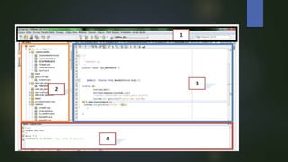 O documento discute as etapas de desenvolvimento de um software: identificação do problema, elaboração da solução e implementação da solução. Ele também explica como criar projetos e arquivos Java no IDE NetBeans, incluindo a criação de pacotes e classes para organizar o código.