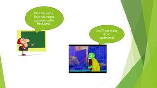 A professora ensina os alunos Andréia, Flávia e Isaac sobre Netiqueta, que são um conjunto de recomendações para evitar mal-entendimentos na internet, como não usar palavrões, grosserias ou exagerar no tamanho das letras.