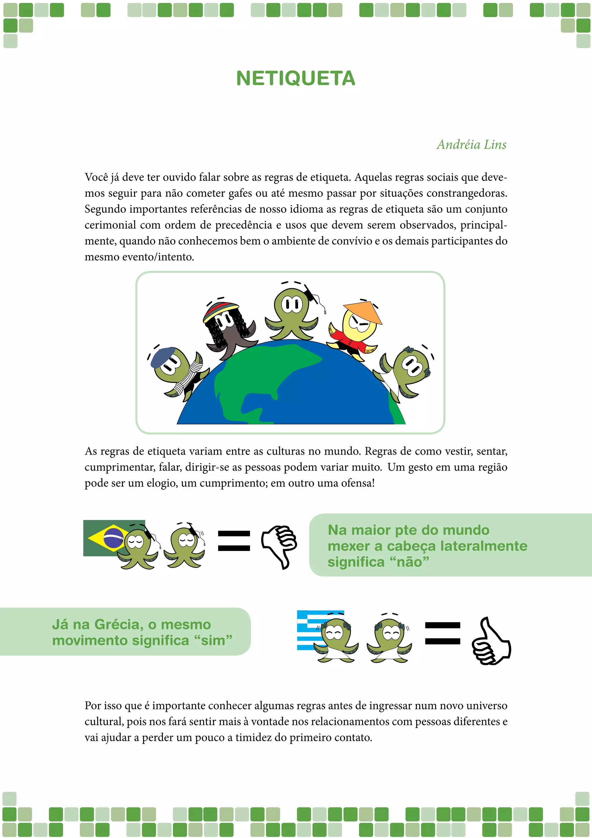O documento discute as regras de etiqueta na internet, chamadas de netiqueta, e fornece diversas recomendações para melhorar as interações online, como citar corretamente fontes, evitar letras maiúsculas ou emoticons em comunicações acadêmicas, e respeitar os direitos autorais.
