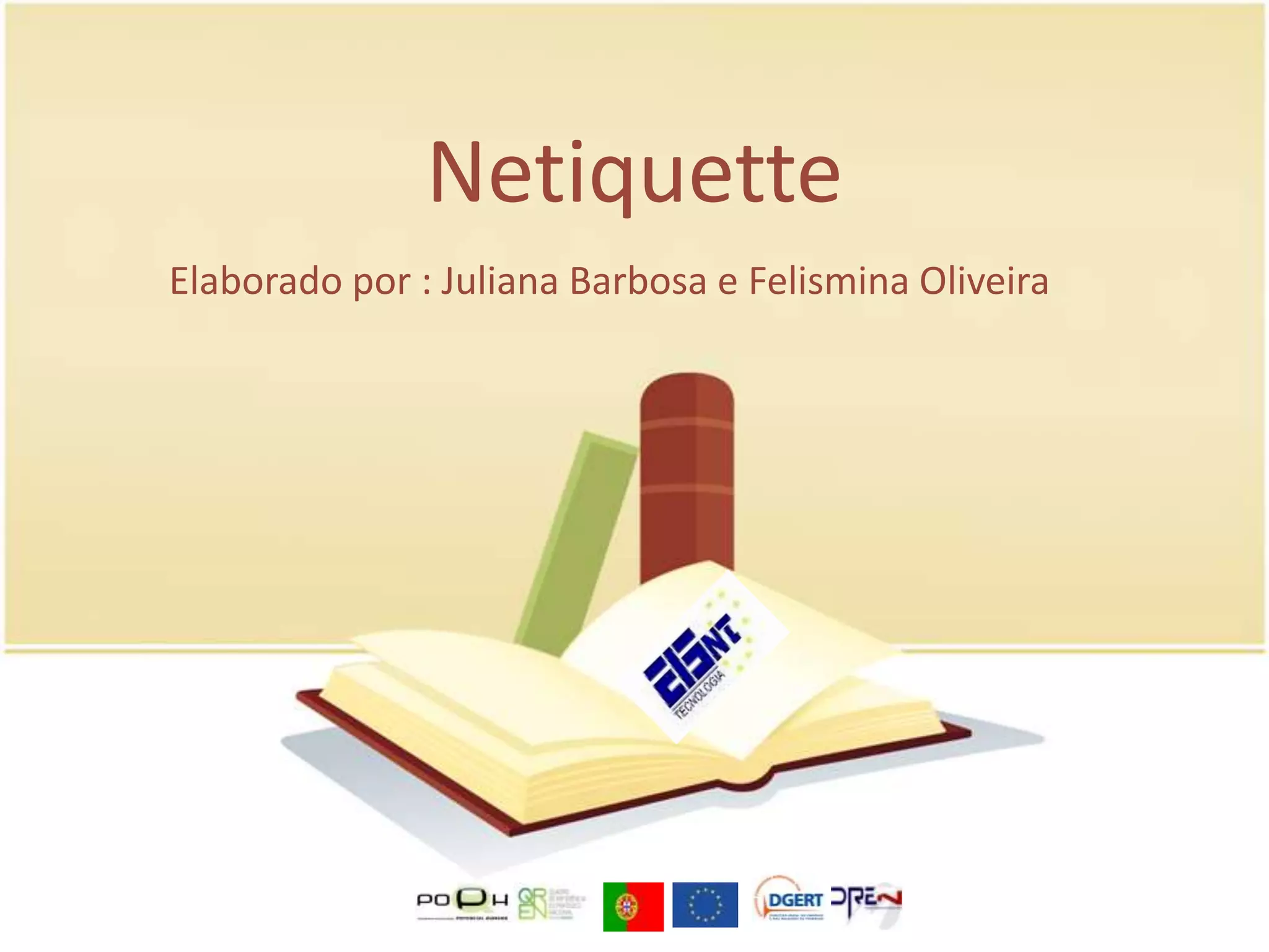 O documento apresenta regras de conduta na internet, conhecidas como netiqueta. Apresenta conceitos como mensagens instantâneas, fóruns e e-mail, fornecendo recomendações como evitar gritos virtuais, respeitar os outros, citar fontes e não enviar spam. A netiqueta visa promover bom relacionamento online.