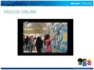 O documento fornece conselhos de segurança para estudantes sobre como se comportarem online, incluindo não divulgar informações pessoais, evitar conversar com estranhos, e avisar um adulto se estiverem sendo vítimas de cyberbullying. Recomenda que os jovens usem as redes sociais com cuidado e verifiquem a validade das informações encontradas online.