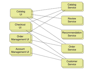 O documento discute microserviços e como o Inka, o API Gateway da Netshoes, fornece funcionalidades essenciais como ponto único de entrada, roteamento, segurança, descoberta de serviço, configurações distribuídas e monitoramento para uma arquitetura de microserviços.