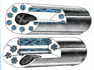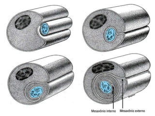 O documento aborda a estrutura, função e tipos de neurônios, incluindo aspectos de sinapses e neurotransmissores. Destaca a importância da mielinização na condução de impulsos nervosos e discute distúrbios como a esclerose múltipla. Além disso, menciona o conceito de neuroplasticidade e como o uso ou desuso das conexões sinápticas afeta o processamento de informações no sistema nervoso.