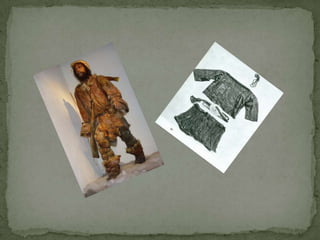 O documento discute como os humanos da Pré-História e das civilizações da Mesopotâmia e Egito se vestiam, com roupas feitas de peles de animais, e detalha aspectos da vida cotidiana como alimentação e educação nestas civilizações.