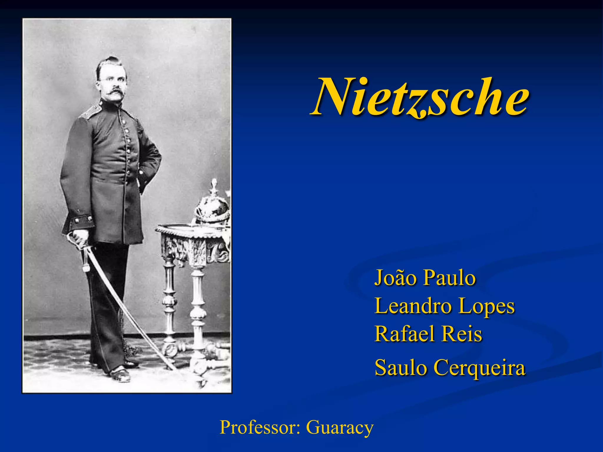 1. O documento apresenta um resumo sobre o filósofo Friedrich Nietzsche, incluindo sua biografia, principais obras e ideias como o niilismo e a morte de Deus.