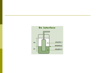O documento descreve diferentes métodos para medir o nível de líquidos em tanques, incluindo medição direta com réguas, visores ou flutuadores, e medição indireta por pressão, empuxo, capacitância, ultra som, radar ou radioatividade. Também aborda a medição descontínua por bóias ou condutividade elétrica.