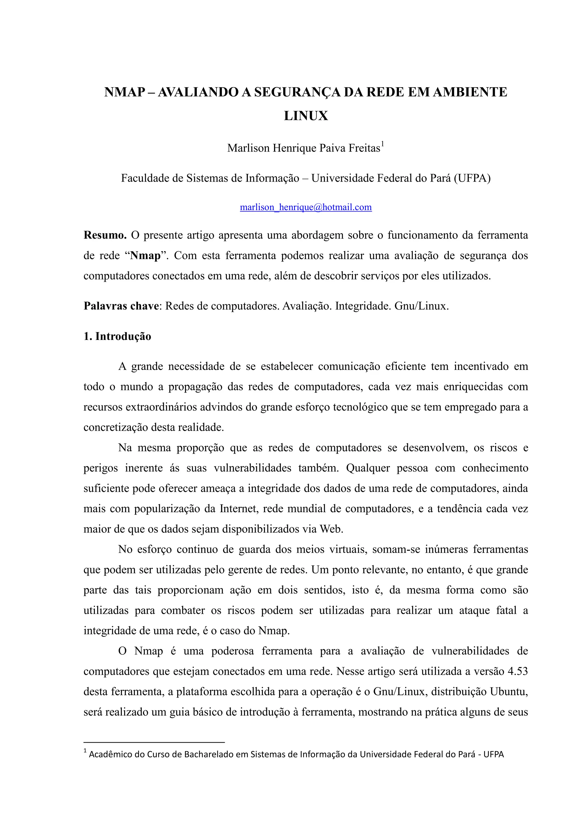 1) O documento discute o uso da ferramenta Nmap para avaliar a segurança de uma rede em ambientes Linux.