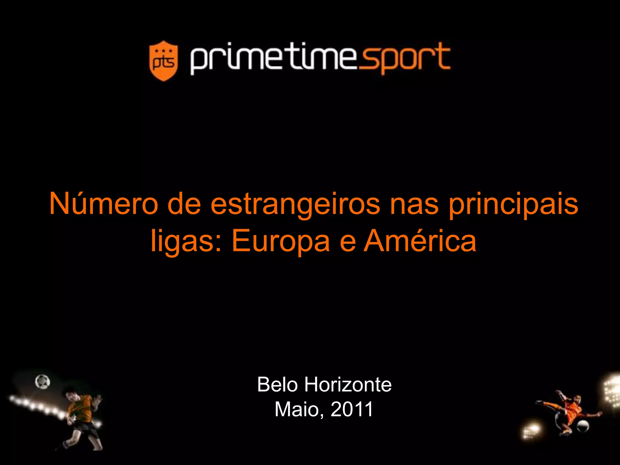 O documento analisa o número de jogadores estrangeiros nas principais ligas da Europa e América em maio de 2011. A Premier League possui a maior proporção de estrangeiros na Europa, enquanto a La Liga tem os menores índices. Na América, a Major League Soccer apresenta a maior diversidade, enquanto o Brasil tem o menor número de jogadores estrangeiros.