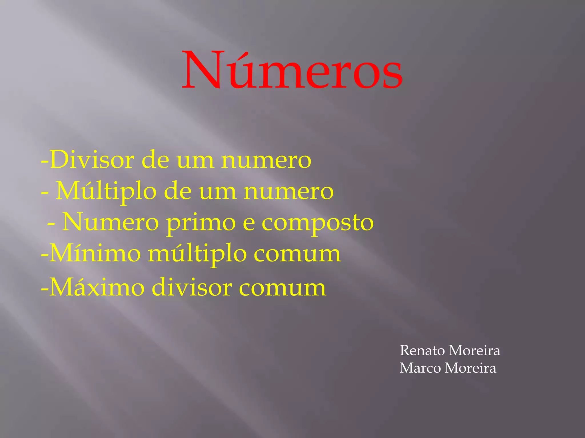 1) O documento discute conceitos numéricos como divisores, múltiplos, números primos e compostos, mínimo múltiplo comum e máximo divisor comum.