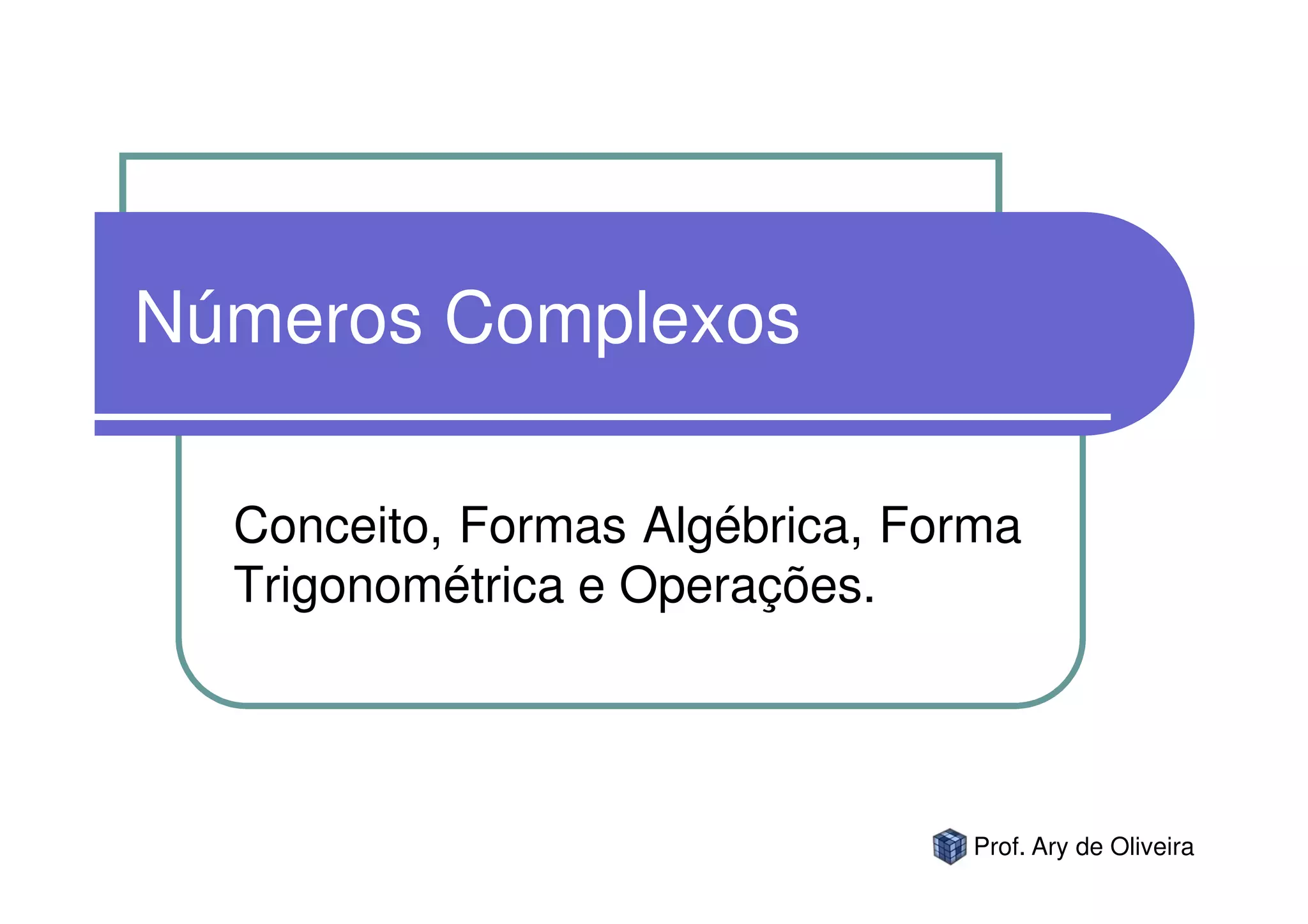 O documento apresenta os conceitos básicos dos números complexos, incluindo: (1) sua origem para resolver equações do segundo grau, (2) sua forma algébrica como a soma de parte real e imaginária, e (3) suas representações no plano cartesiano.
