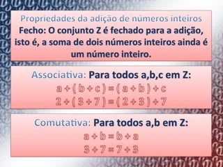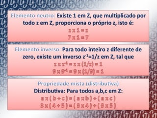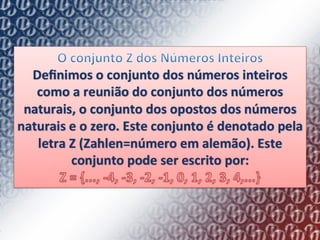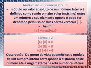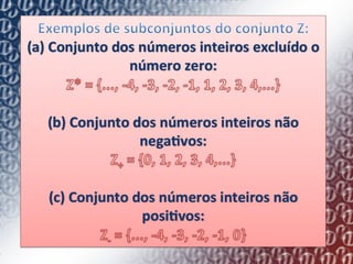 2) Explica como o conjunto de números inteiros (Z) pode ser representado geometricamente em uma reta numerada, com cada número tendo um antecessor e sucessor.