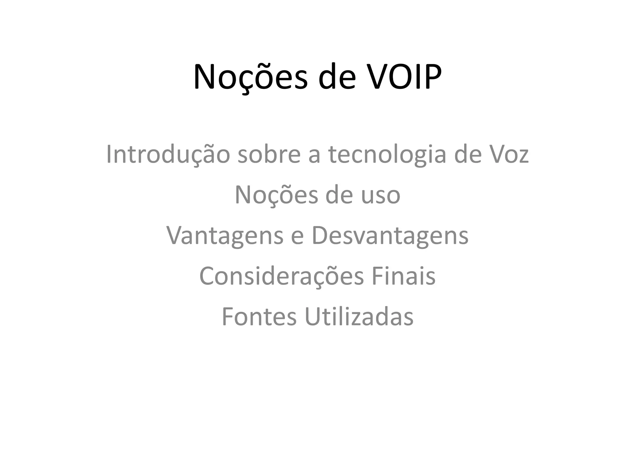 O documento discute a tecnologia VoIP (Voz sobre IP), explicando seu funcionamento, vantagens e regulamentação no Brasil pela ANATEL. O VoIP digitaliza a voz em pacotes de dados para transmissão pela Internet e pode ser usado tanto por empresas para reduzir custos quanto por usuários residenciais. A ANATEL regulamenta o VoIP apenas quando ele é oferecido como serviço de telecomunicações, e não quando usado como serviço de valor agregado.
