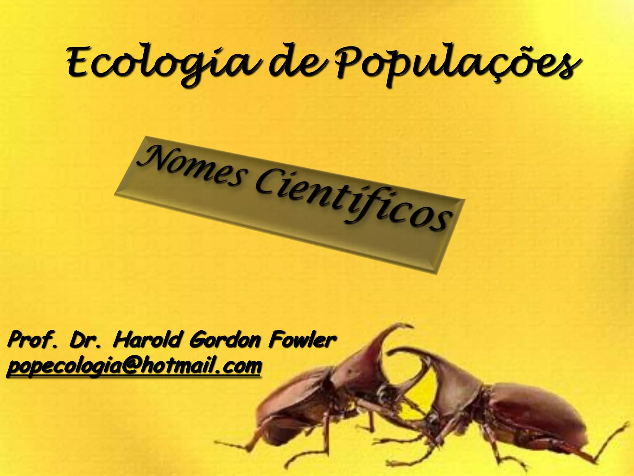 O documento discute a ecologia de populações e a importância da classificação e nomenclatura científica de organismos. A classificação coloca organismos em grupos com base em suas similaridades e relações evolutivas para organizar o estudo da natureza. A nomenclatura científica binomial padronizada, desenvolvida por Linnaeus, permite que cientistas de diferentes países se comuniquem sobre os mesmos organismos sem confusão.