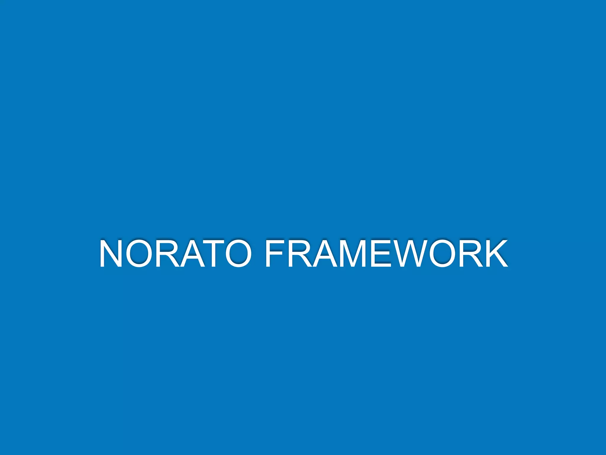 O Norato Framework é um framework front-end open source que fornece padrões, qualidade e produtividade para desenvolvedores. Ele define variáveis para grids, formulários, cores e tipografia para criar um layout consistente. O framework foi desenvolvido com amor por Paullo Norato, um designer front-end experiente que incentiva os usuários a testarem o framework e fornecerem feedback.