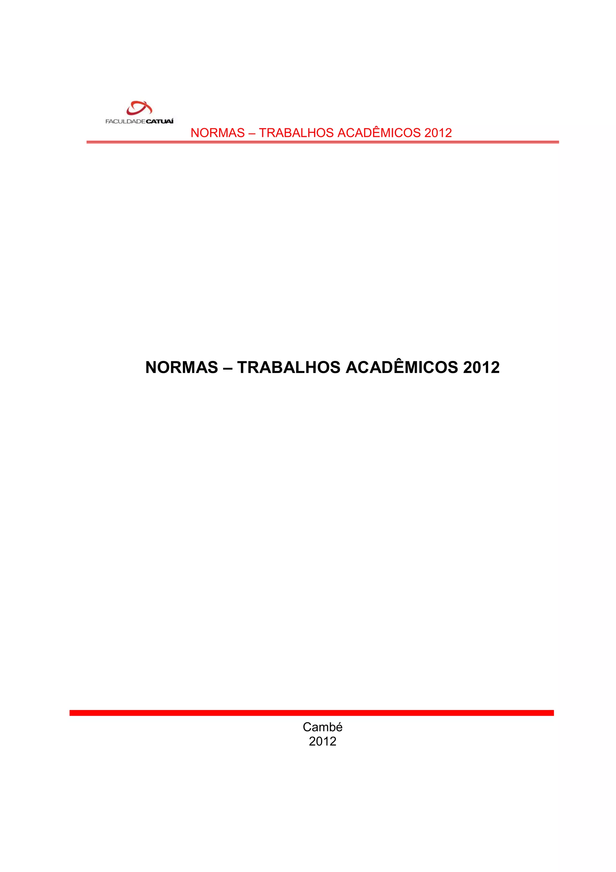 Este documento fornece diretrizes sobre a estrutura e formatação de trabalhos acadêmicos de acordo com as normas da ABNT. Ele discute elementos como estrutura do trabalho, apresentação gráfica, citações bibliográficas, referências, estrutura do trabalho acadêmico e equações, ilustrações e tabelas.