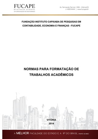 1. O documento apresenta normas para formatação de trabalhos acadêmicos da Fundação Instituto Capixaba de Pesquisas em Contabilidade, Economia e Finanças (FUCAPE).