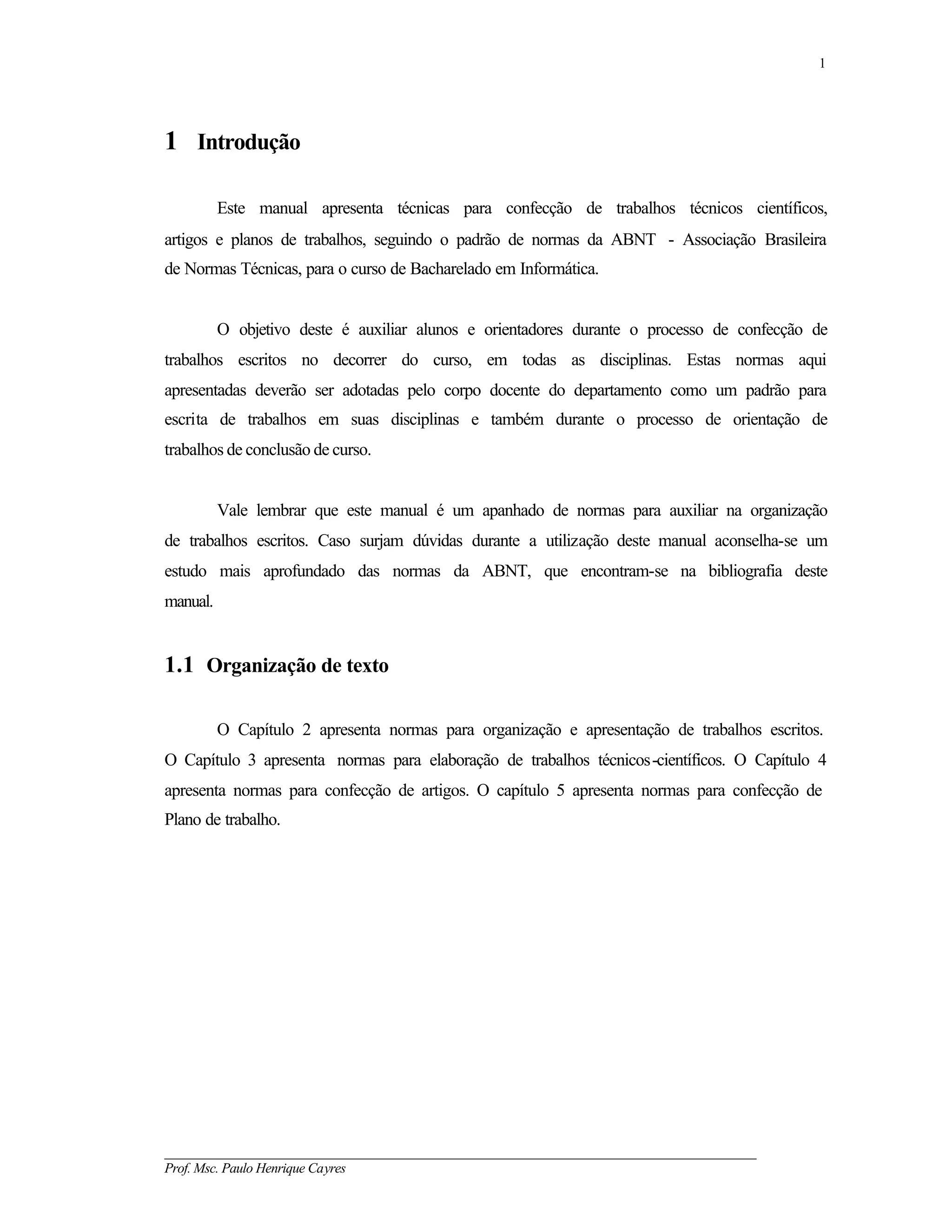 1. O documento apresenta normas e diretrizes para a elaboração de trabalhos acadêmicos segundo o padrão da ABNT, incluindo informações sobre formatação, elementos pré-textuais e organização do corpo do texto.