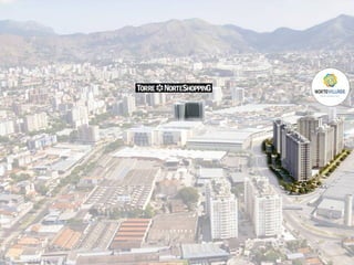 O documento descreve um empreendimento imobiliário localizado na Zona Norte com 288 unidades residenciais de 2 e 3 quartos e coberturas duplex. O condomínio oferece diversas áreas de lazer como piscinas, quadra de esportes, academia, salões de festa e espaços infantis.