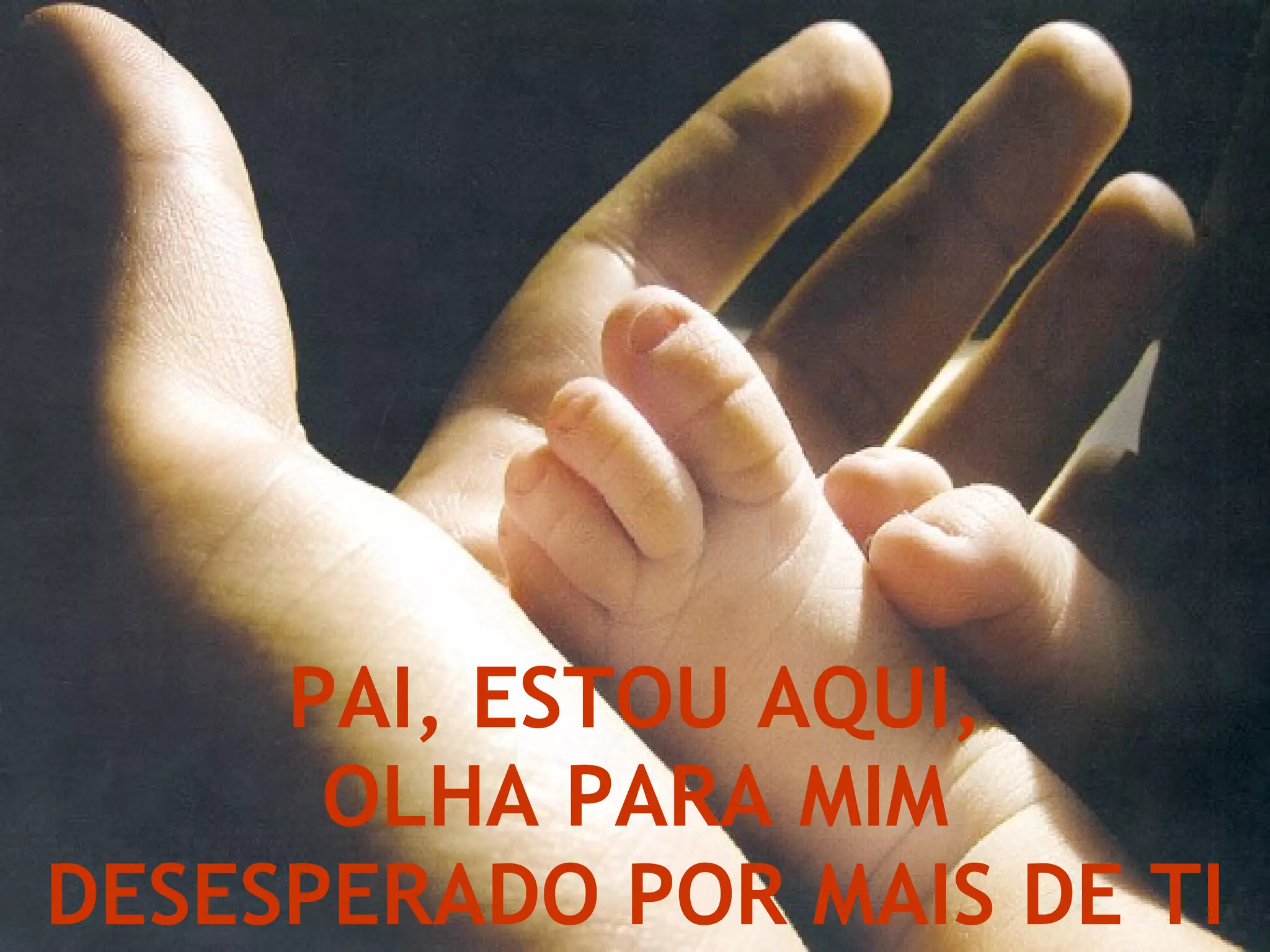 Uma pessoa está desesperadamente ansiosa pela presença e atenção de Deus, que é seu sustento e alimento. Ela precisa ouvir a voz de Deus dizendo que pode ir até Ele, onde será acolhido em seus braços, levado ao altar e terá suas feridas curadas enquanto Deus fala com amor.