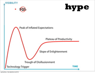 O documento discute a história e conceitos-chave do NoSQL. Apresenta os modelos de dados ao longo do tempo, como hierárquico, relacional e orientado a objetos. Explica os conceitos de CAP, BASE, consistência eventual e os trade-offs do NoSQL em relação ao SQL.