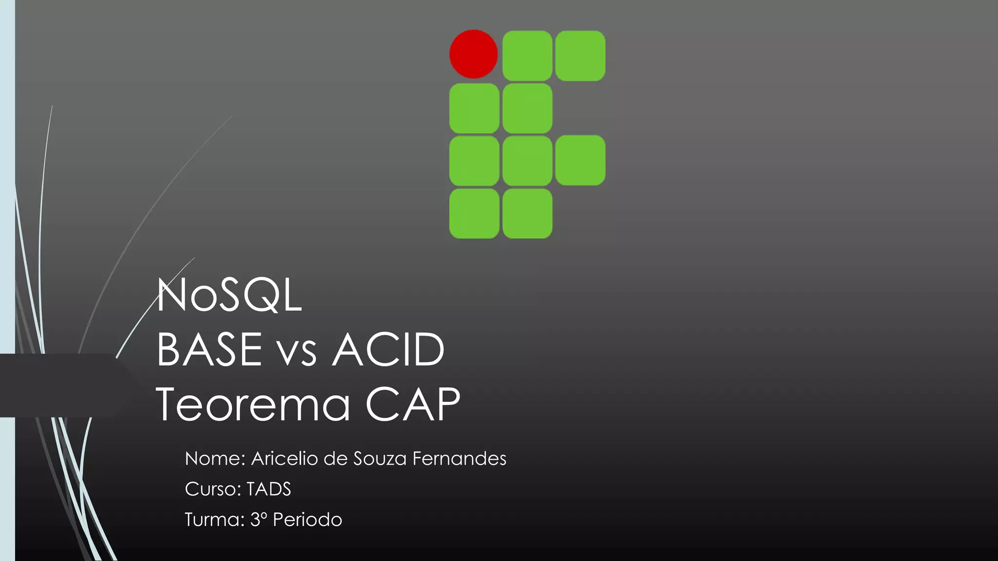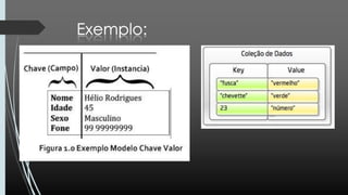 O documento discute NoSQL, comparando propriedades ACID e BASE e o teorema CAP. Apresenta vários modelos NoSQL como chave-valor, orientado a colunas, documentos e grafos. Explica como sistemas NoSQL priorizam disponibilidade sobre consistência de acordo com o teorema CAP.