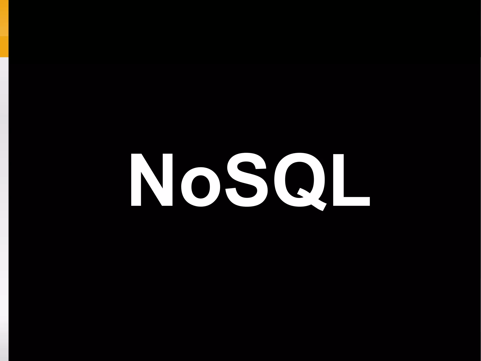 NoSQL é um banco de dados não relacional que surgiu para atender demandas de alta performance e escalabilidade. Existem diferentes tipos como Key/Value Store, Document Store e Wide Columns Store. Node.js é uma plataforma que permite executar JavaScript no lado do servidor de forma assíncrona e orientada a eventos usando bibliotecas como Express e Socket.io.