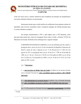 O documento trata sobre a aplicação do princípio da insignificância aos crimes tributários estaduais. Ele resume que os tribunais superiores entendem que cada estado deve estabelecer por lei qual o valor máximo de débito tributário que não será cobrado, servindo esse valor como parâmetro para a aplicação da insignificância em crimes de sonegação fiscal na justiça estadual. O documento cita exemplos de leis estaduais que definem esse valor.