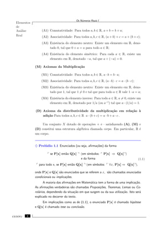 Este documento apresenta os conceitos fundamentais dos números reais, incluindo: