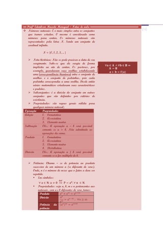 1. O documento apresenta conceitos matemáticos como números naturais, frações, unidades de medida e porcentagem.
