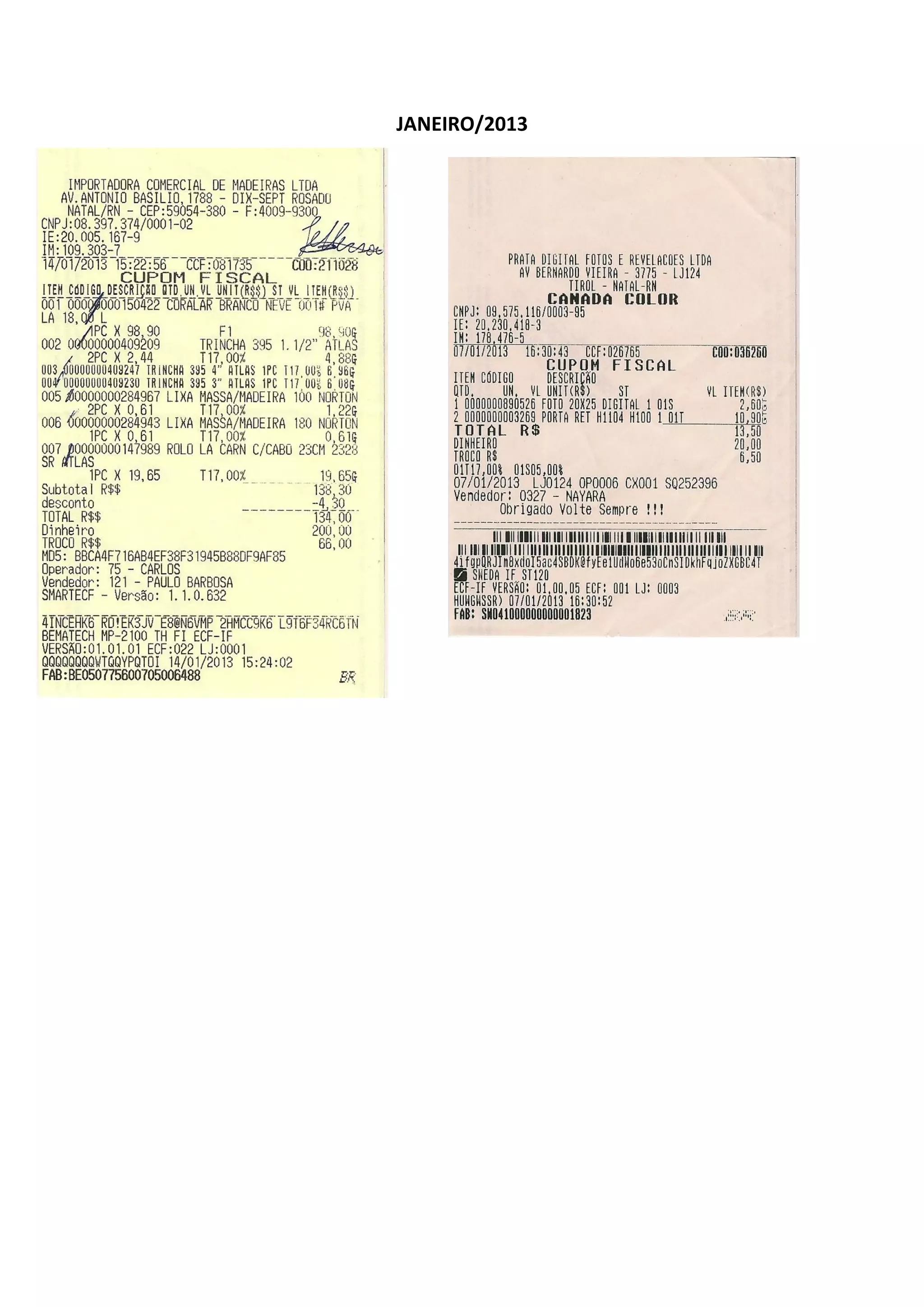 Notas Fiscais de Janeiro