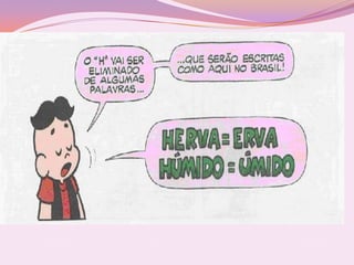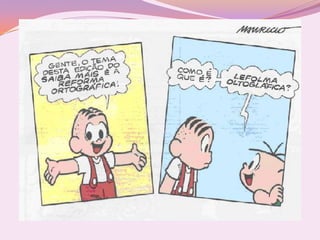A professora Cilma Barbosa leciona Língua Portuguesa na Escola Estadual Gustavo Rodrigues da Silva. O documento trata da Reforma Ortográfica.
