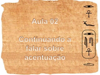 O documento discute as regras de acentuação em palavras paroxítonas no português. Ele explica que o acento desaparece nos ditongos "ei" e "oi" em palavras paroxítonas como "ideia" e "jóia", mas não em palavras oxítonas como "herói". Também diz que o acento não é mais usado em "i" e "u" tônicos depois de um ditongo, como em "feiura" e "cauíla", a menos que a palavra seja oxítona e termine em "