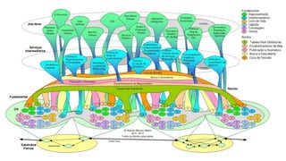 O documento descreve a história e os conceitos por trás do projeto Novagenesis, que visa criar uma nova arquitetura para a Internet considerando como ela poderia ser projetada hoje. O documento detalha as etapas do projeto desde 2008, apresenta os principais conceitos como nomeação e resolução de nomes, ciclo de vida, gêmeos digitais e tudo como serviço. Além disso, discute como a Novagenesis se diferencia por operar baseada em contratos e ter pedras fundamentais como nomeação, resolução de nomes e representação digital de objetos.