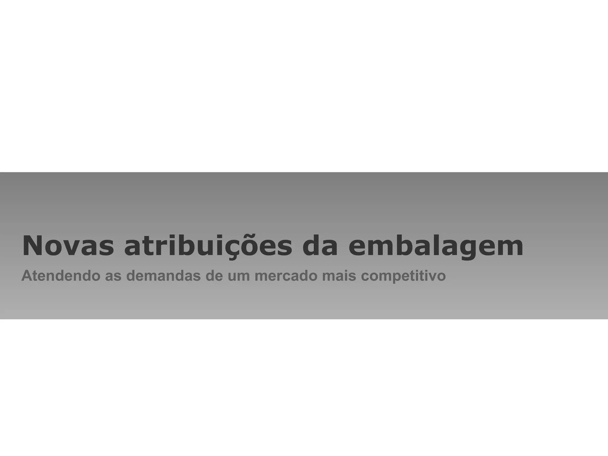 O documento discute as novas atribuições da embalagem para atender um mercado mais competitivo. A embalagem deixou de ter apenas a função de transporte e agora deve proteger, informar, promover a venda e consolidar a imagem da marca. Além disso, deve ser funcional e agregar valor ao produto representando o status desejado pelo consumidor.