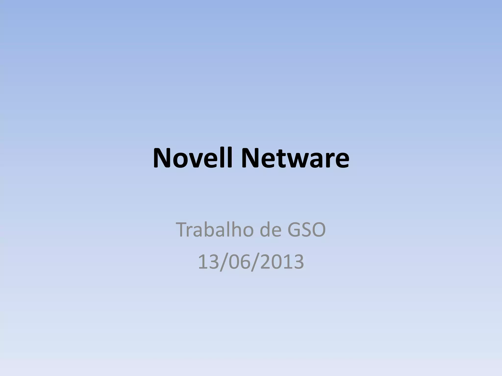 O documento descreve o sistema operacional de rede Novell Netware, incluindo sua história desde o lançamento em 1983, principais características como compartilhamento de arquivos e impressoras, e concorrência com sistemas Windows. Finaliza detalhando o fim do suporte ao Netware em 2010 devido à popularidade decrescente.