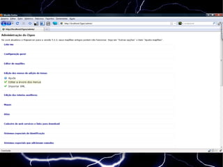 O documento apresenta novidades sobre o i3geo, uma interface integrada de geoprocessamento que utiliza o Mapserver para criar mapas interativos. Entre as atualizações estão a implementação de um sistema de administração baseado no SQLite, integração com APIs e melhorias de otimização. A versão 4.3 está em desenvolvimento, com foco na padronização e atualização de funções e documentação.