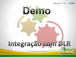 Porque a DLR?Common Language Runtime Statically-Typed C# VB Ruby Python Dynamically-Typed Dynamic Language Runtime Estaticamente tipados Dinamicamente tipados