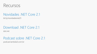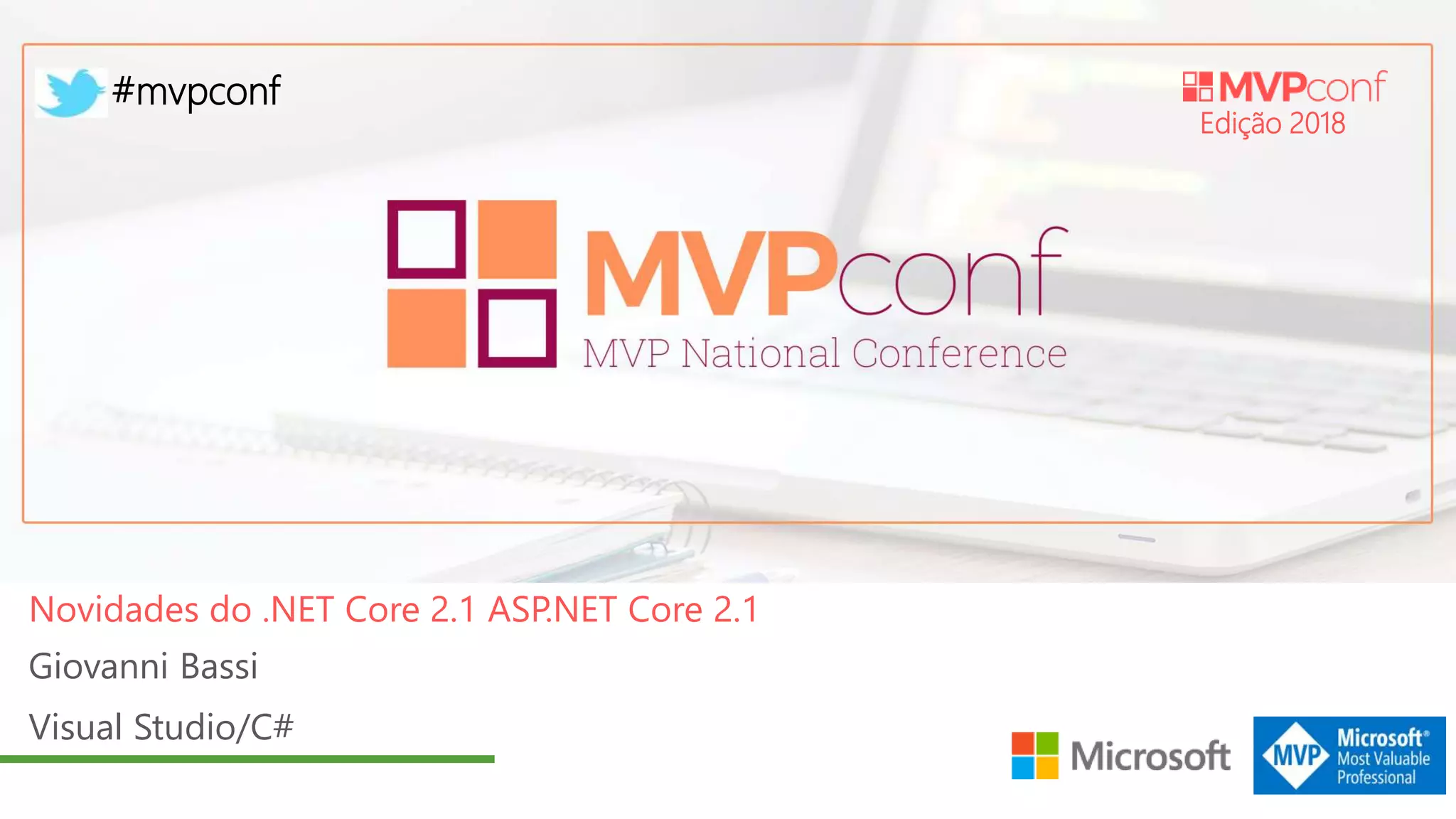 O documento resume uma conferência sobre novidades do .NET Core 2.1 e ASP.NET Core 2.1, incluindo palestras de Giovanni Bassi e Victor Cavalcante. O evento também promove a arrecadação de doações para instituições de caridade e contém informações biográficas sobre os palestrantes.