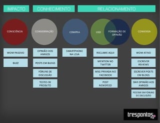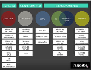 O documento discute a evolução do consumidor moderno e como as marcas precisam se comunicar de forma integrada e relevante em todos os pontos de contato com o consumidor. Destaca que os consumidores vivem online e não apenas usam a internet, e que a jornada do consumidor é única, não importa o canal. As marcas precisam parar de subestimar os consumidores e superestimar sua própria relevância.