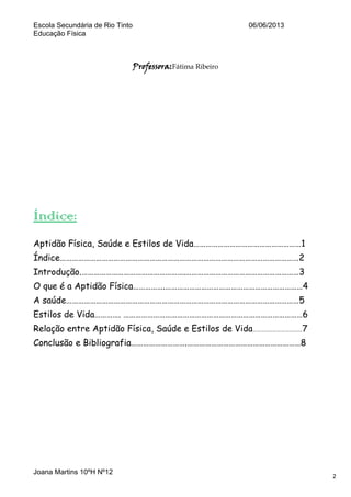 Este documento discute a relação entre aptidão física, saúde e estilos de vida. Define aptidão física como a capacidade de realizar atividades diárias com menos esforço e discute como a prática regular de exercícios físicos está associada a maior saúde e qualidade de vida. Também explora como estilos de vida saudáveis que incluem boa nutrição, lazer e exercícios podem proteger contra doenças crônicas.