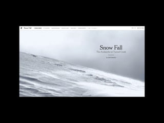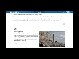 O documento discute as novas características e formatos do jornalismo digital, enfatizando recursos como infografia interativa, vídeos 360 e narrativas visuais. Ele destaca a importância de dispositivos multimídia e novas formas de interação, como podcasts e reportagens em tempo real. As mudanças no cenário digital apresentam desafios significativos para o setor de jornalismo.