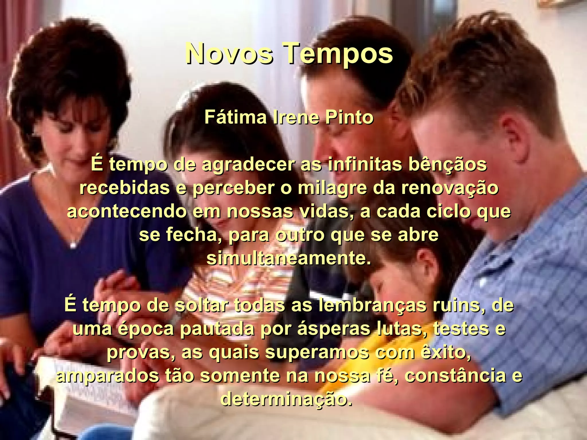 O documento discute como é tempo de agradecer as bênçãos recebidas, soltar lembranças ruins do passado e enaltecer aqueles que contribuíram para o nosso crescimento. Também fala sobre abrir-se para o futuro com fé no amor que liberta e conduz a nossa vida, pedindo perdão a Deus e aos outros por erros cometidos.