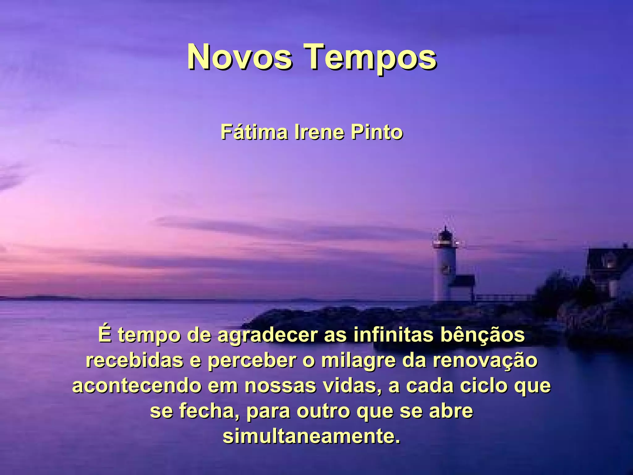 O documento discute como é tempo de agradecer as bênçãos recebidas, soltar lembranças ruins do passado e enaltecer aqueles que contribuíram para o nosso crescimento, mesmo que indiretamente. Também fala sobre abrir-se para o futuro com fé no amor e confiança em Deus.