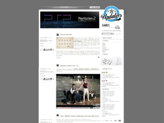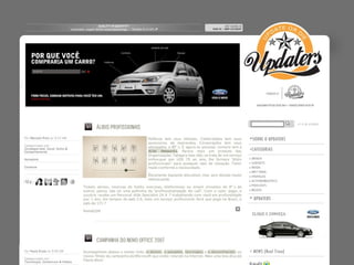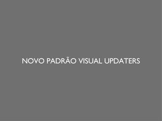 O documento descreve as novas atualizações e mudanças no layout do site www.updaters.com.br, incluindo um banner maior, pesquisa aprimorada, navegação otimizada com base em usabilidade, posts que carregam mais conteúdo ao rolar a página e comentários que abrem ao passar o mouse. Ele também lista os vários canais e blogs do site.