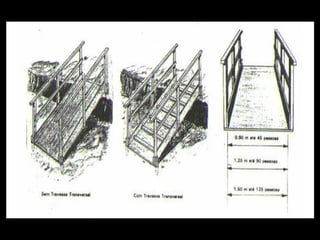 O documento estabelece requisitos mínimos de segurança para edificações como pisos sem depressões prejudiciais, proteção contra quedas em aberturas e da necessidade de guarda-corpos em áreas elevadas, além de exigir pisos e paredes impermeabilizadas e coberturas que protejam contra chuvas.