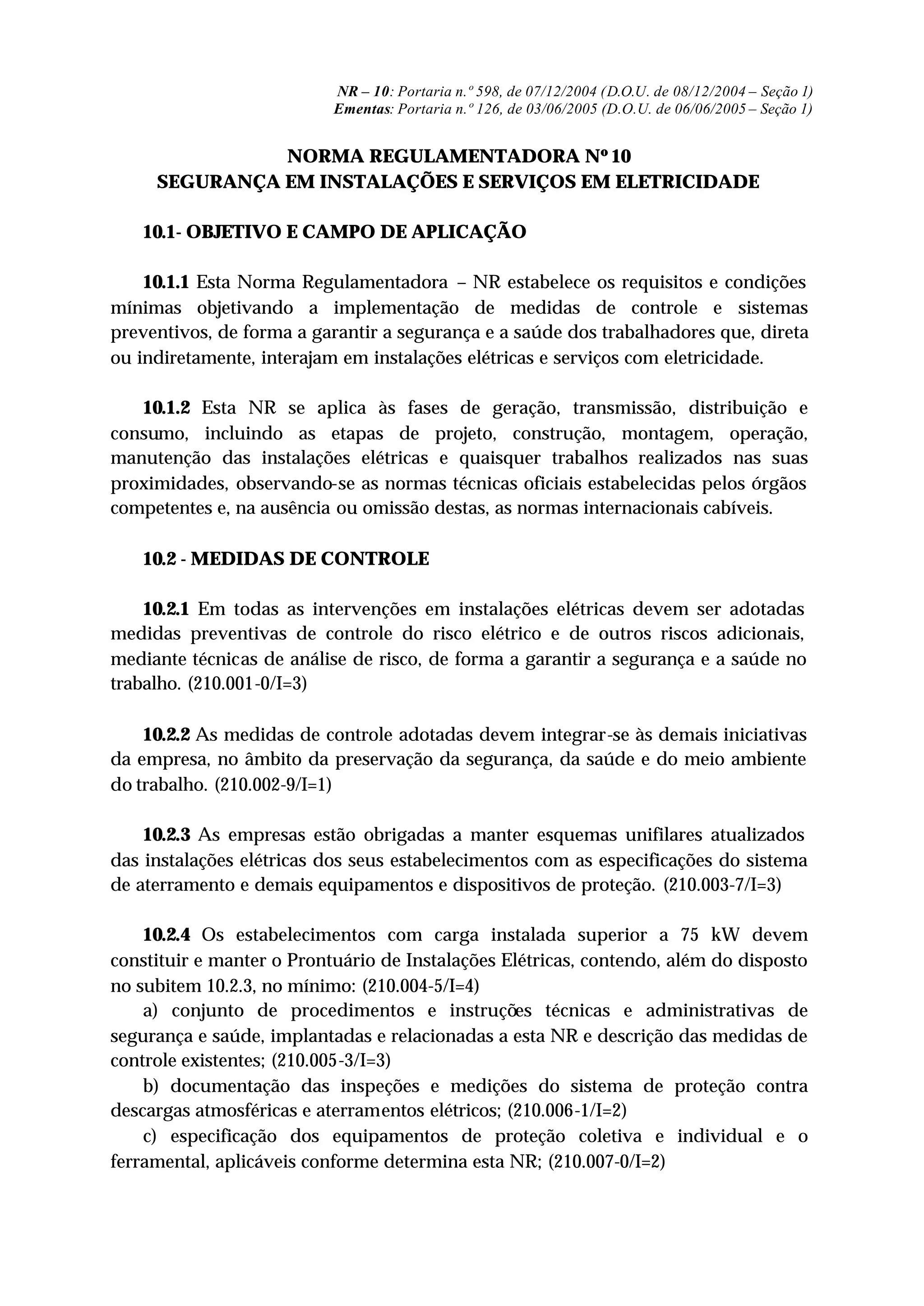 Esta Norma Regulamentadora estabelece requisitos mínimos de segurança para trabalhadores que interagem com instalações e serviços elétricos, cobrindo projeto, construção, operação e manutenção. Empresas devem manter documentação atualizada sobre suas instalações elétricas e implementar medidas de proteção coletiva e individual. O documento também especifica requisitos técnicos para projetos elétricos garantirem a segurança no trabalho.